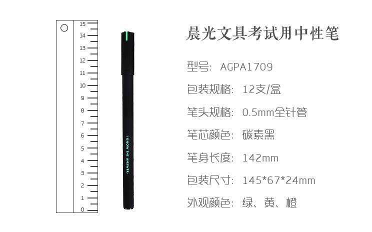 晨光文具中性筆0.5 6支學(xué)生考試專用筆碳素黑簽字筆全針管水筆芯A1709
